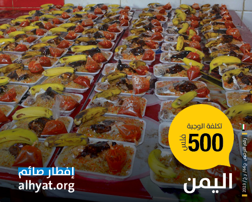 تقوم جمعية الحياة الخيرية بتقديم وجبات افطار للفقراء والايتام والمساكين في اليمن في شهر رمضان المبارك.